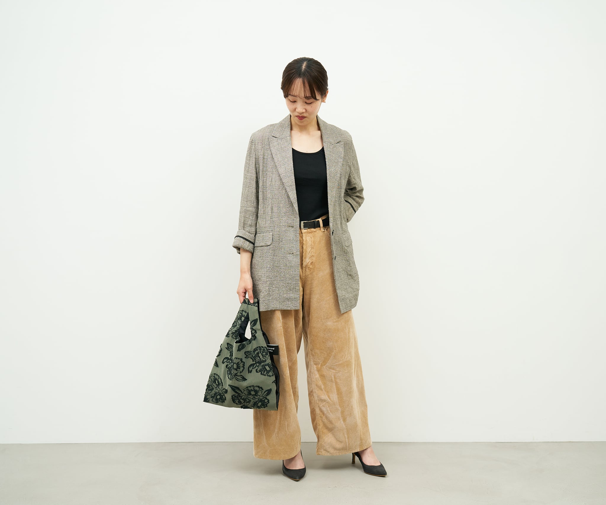 ジャカード織の多様な手触りや風合いを、存分にお楽しみいただけるバッグです。