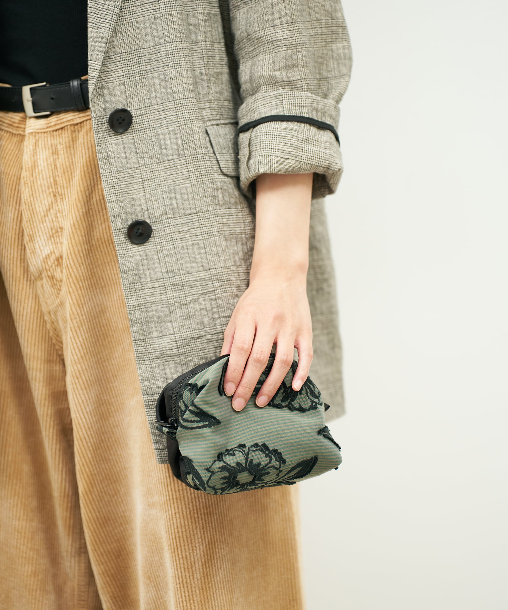 見た目にも個性的で、手触り感も楽しめるジャカード織生地を使うことで、生地自体の表情や風合いを存分に楽しめて、まるでペットのように撫でたくなってしまうポーチです。