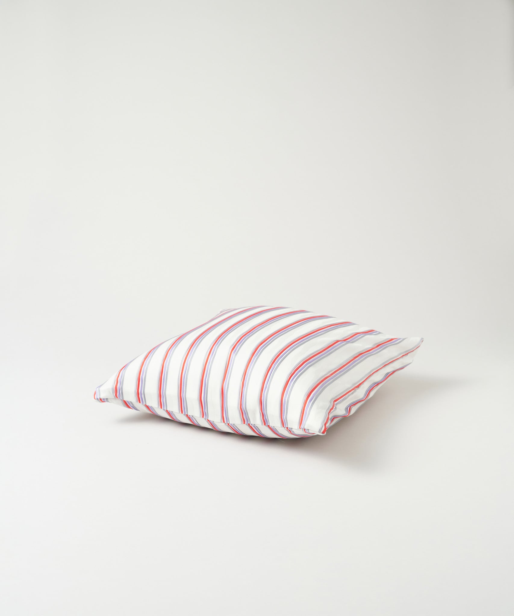 朱色、紫、グレーの色を組み合わせた、ぽこぽことした凹凸感のあるフクレ織りのジャカード織生地を、クッションカバーにしました。個性的でチャーミングなジャカード織生地は、お部屋のアクセントにもぴったり。