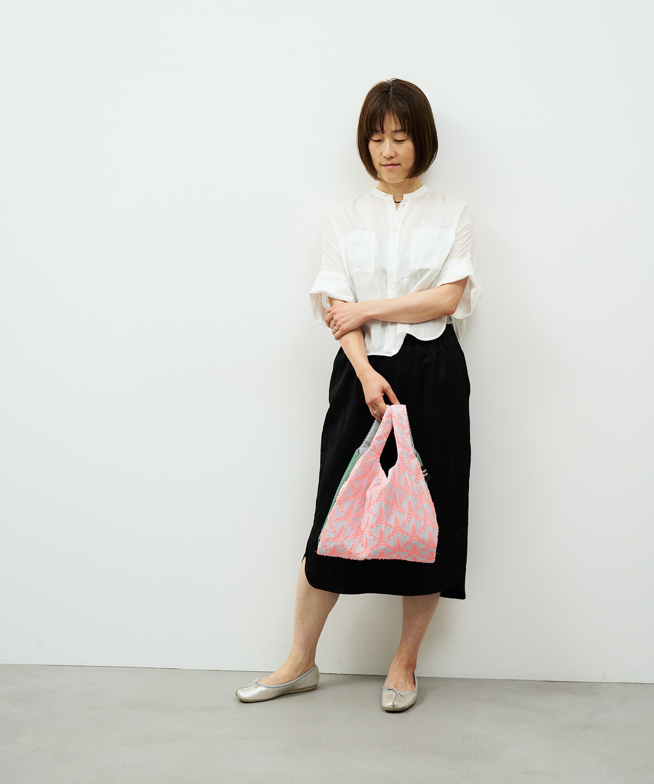 ジャカード織の多様な手触りや風合いを、存分にお楽しみいただけるバッグです。