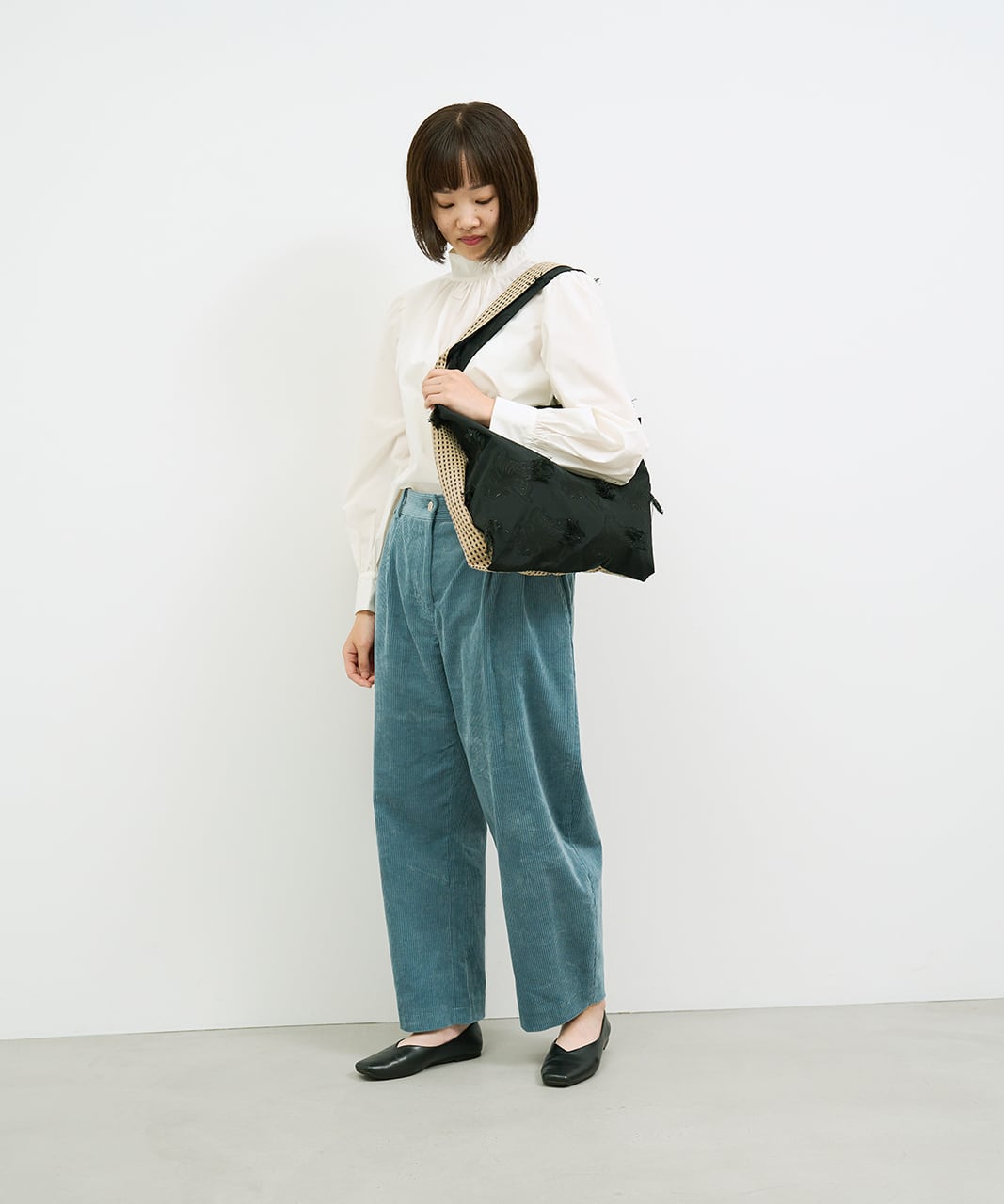 ジャカード織の多様な手触りや風合いを、存分にお楽しみいただけるバッグです。