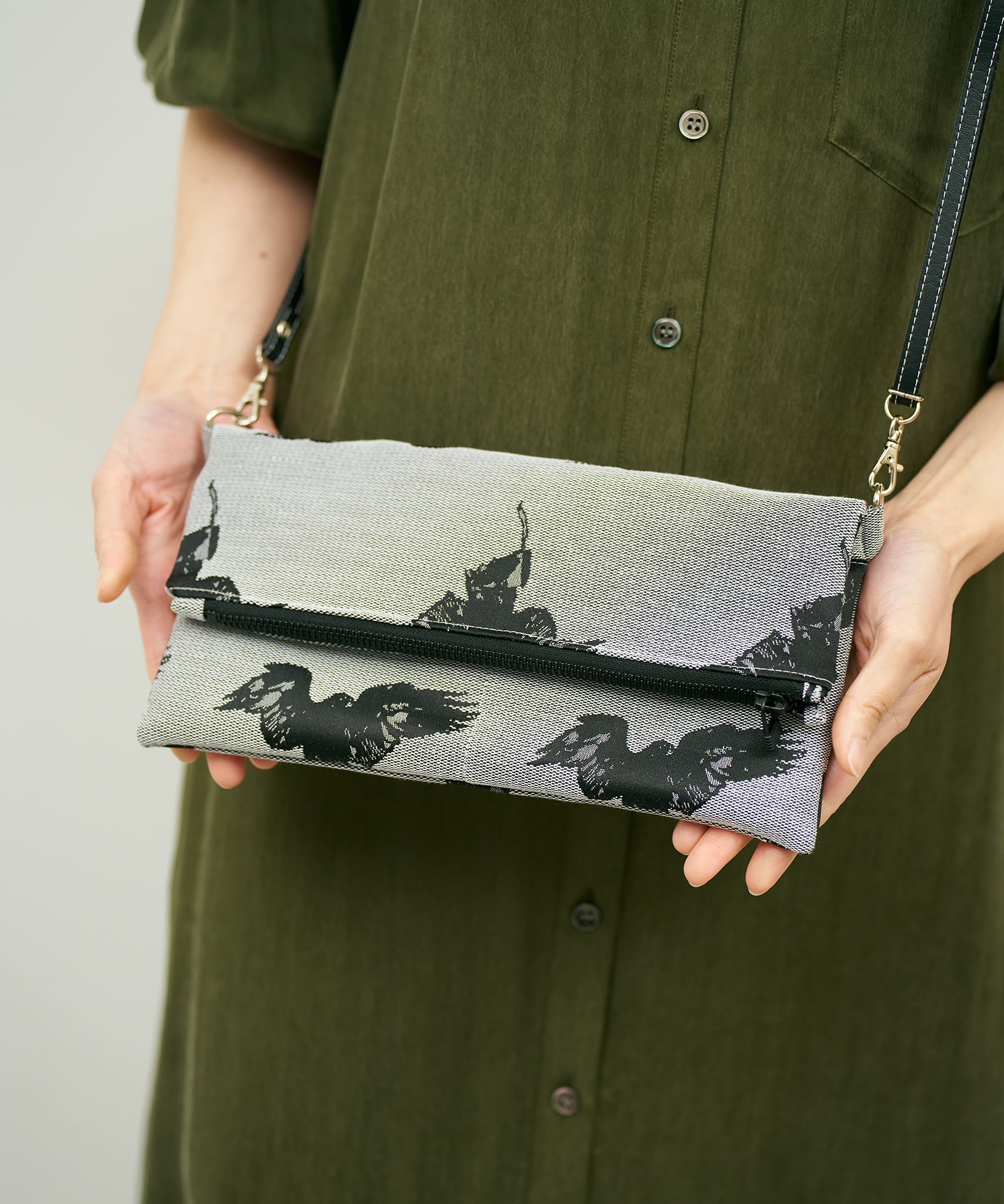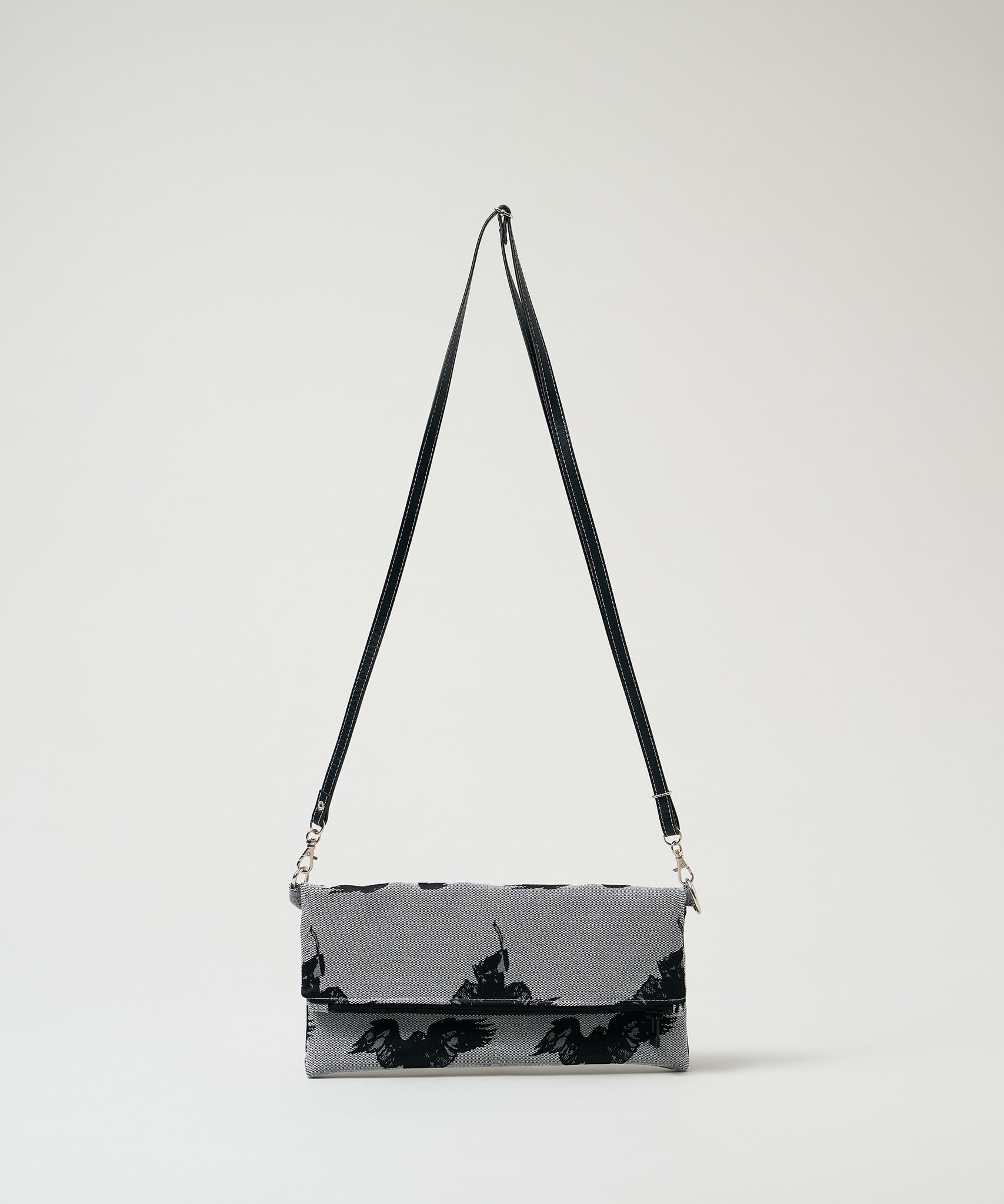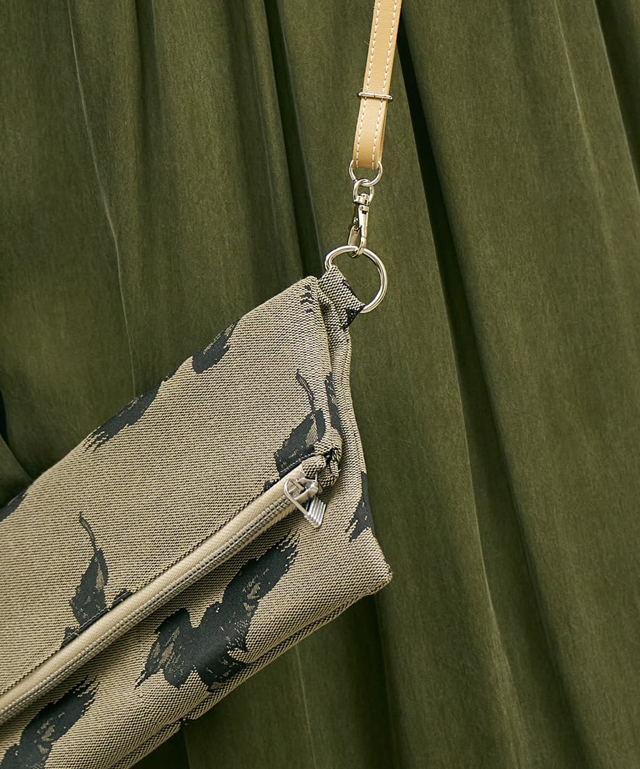 Jacquard Works とアーティスト・高橋信雅氏の「クラシック・シリーズ」とのコラボレーションで生まれたフリップバッグです。「大人の滑稽」がコンセプトのお茶目でクールなイラストを、ジャカード織の生地で細部までこだわって表現しました。