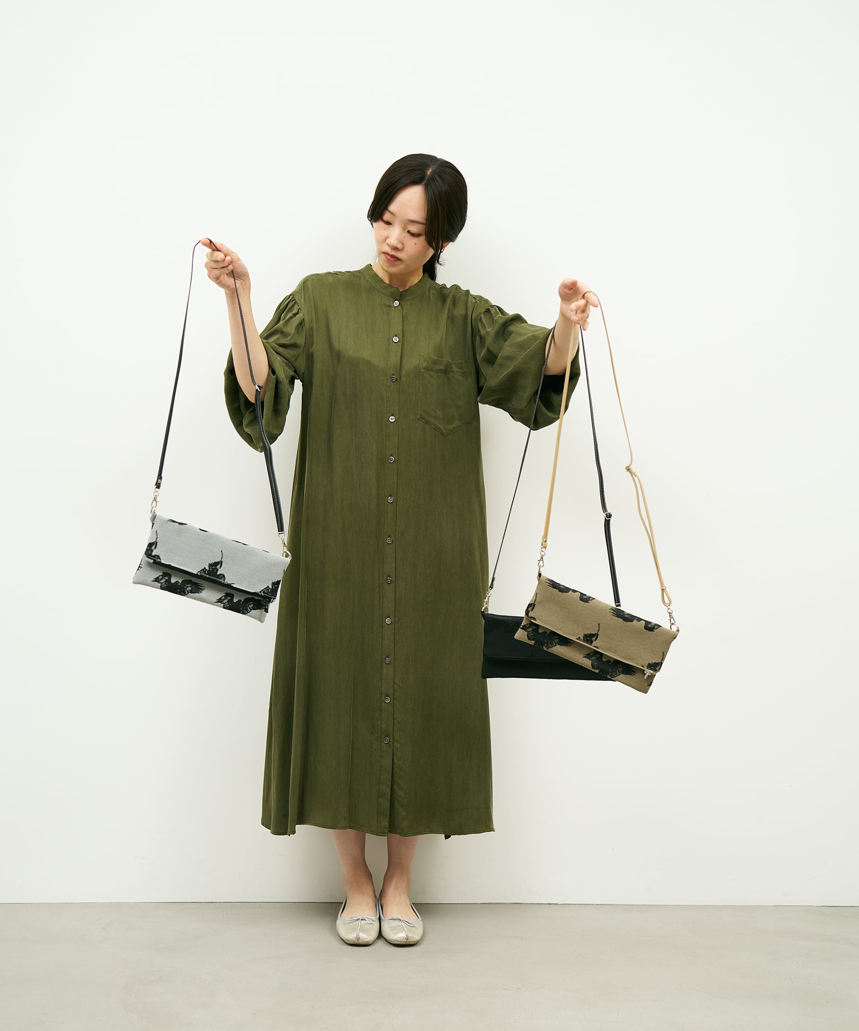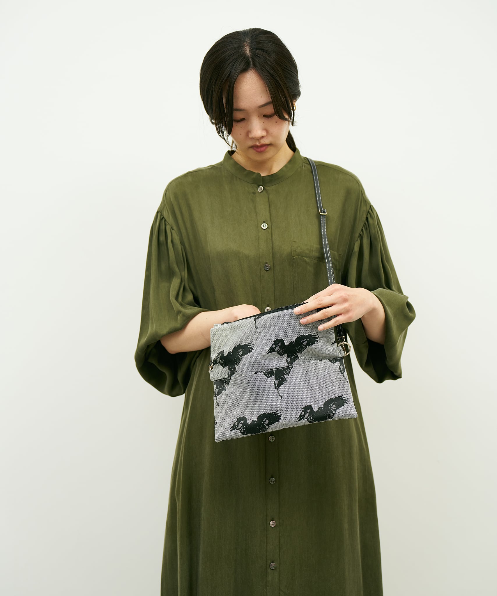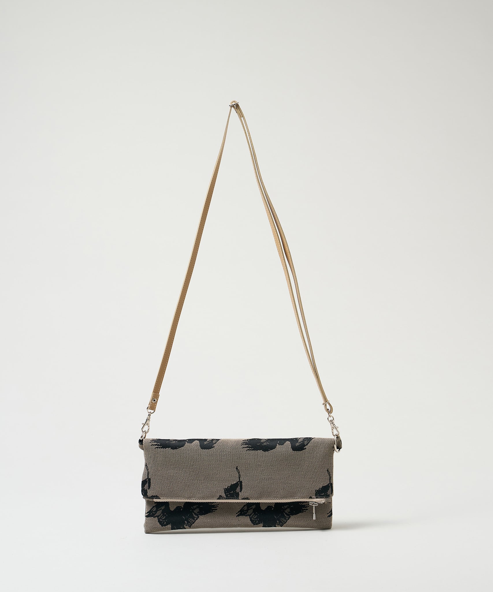 Jacquard Works とアーティスト・高橋信雅氏の「クラシック・シリーズ」とのコラボレーションで生まれたフリップバッグです。「大人の滑稽」がコンセプトのお茶目でクールなイラストを、ジャカード織の生地で細部までこだわって表現しました。