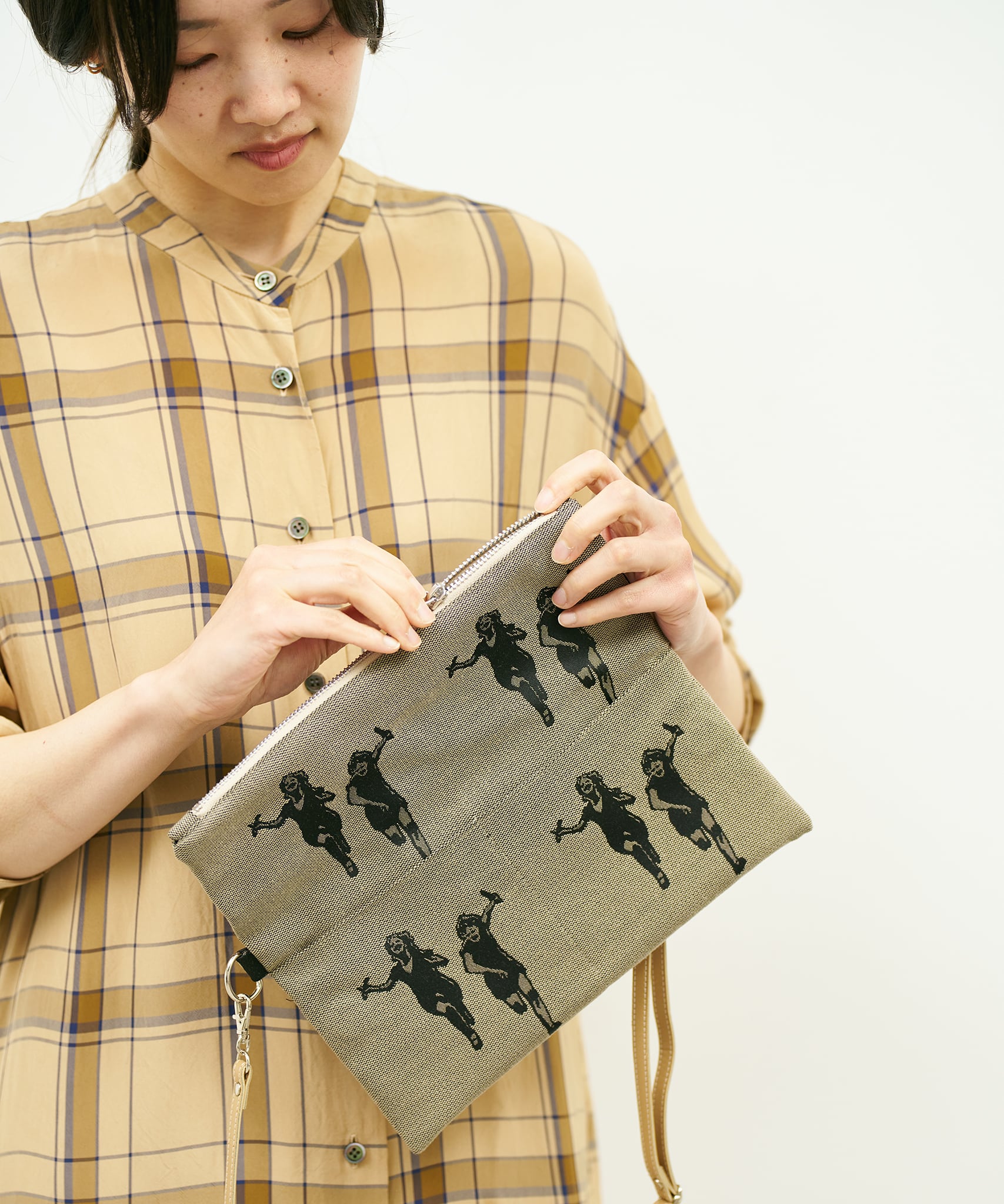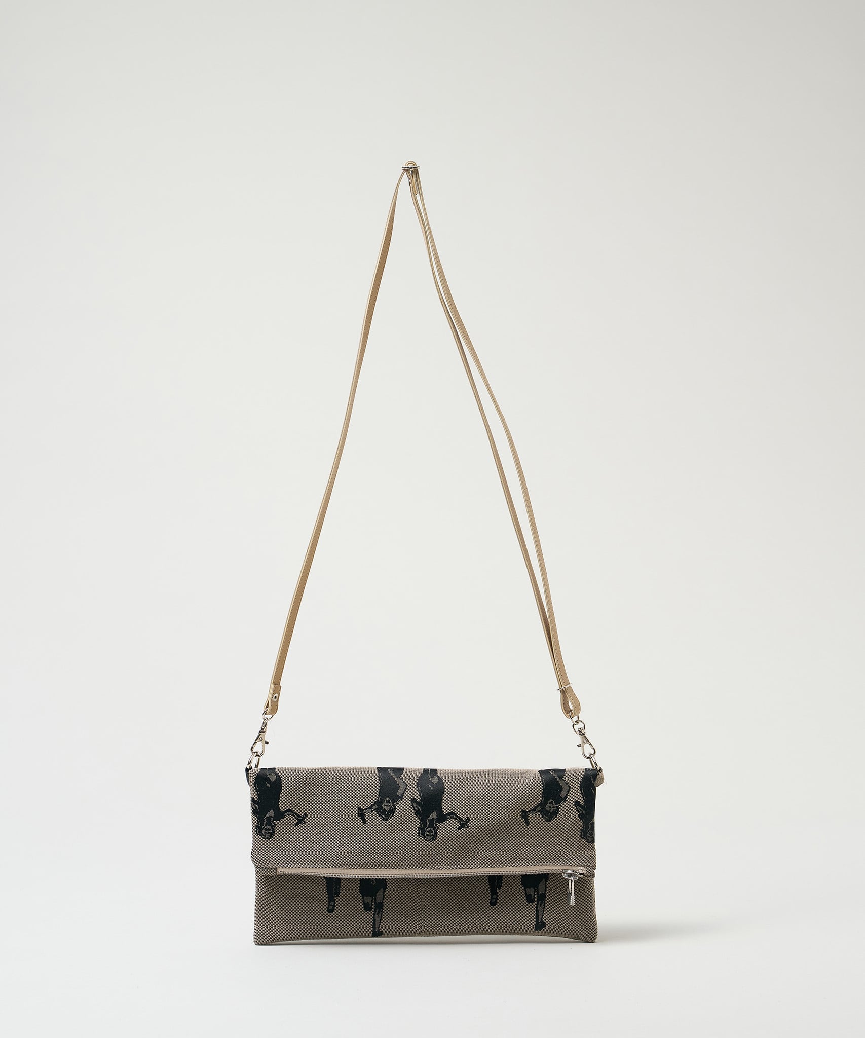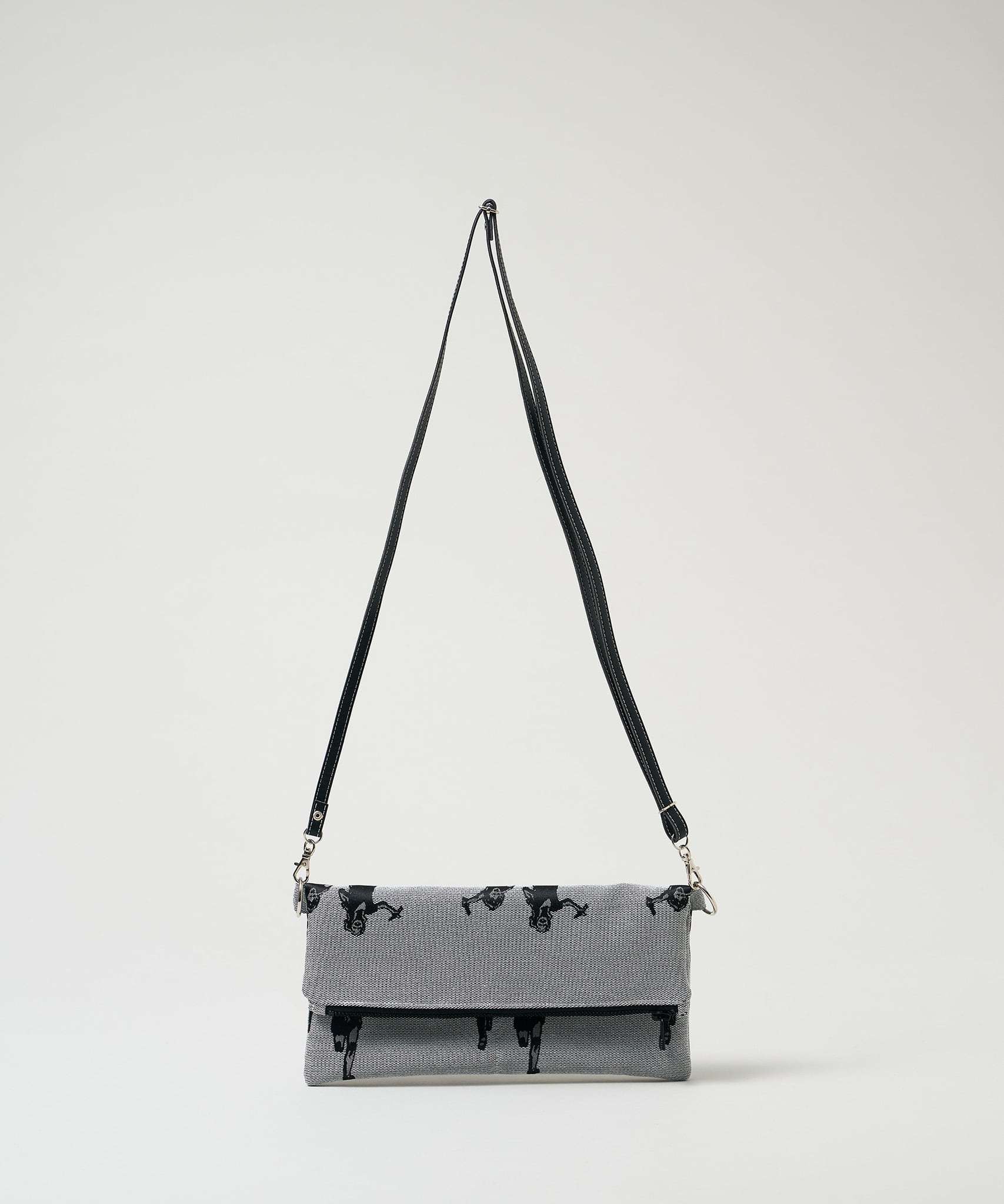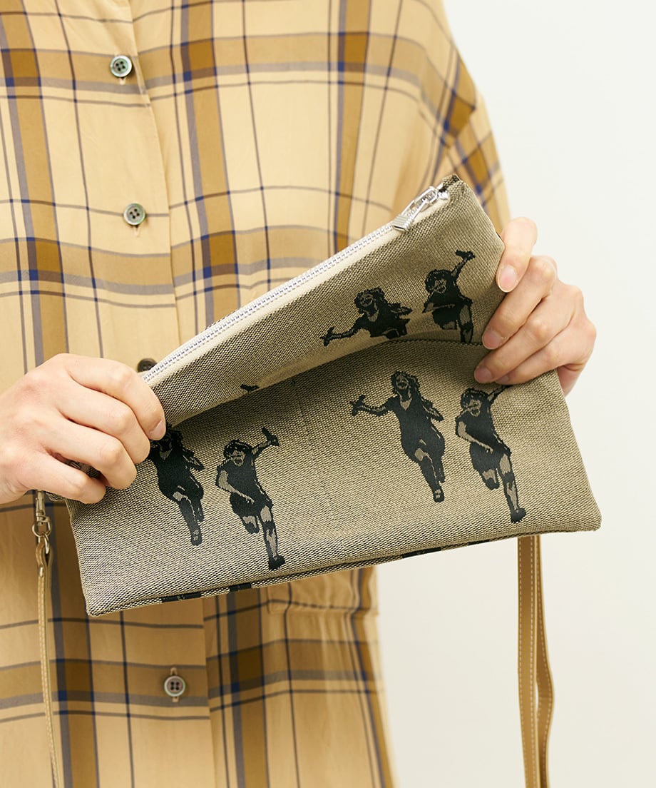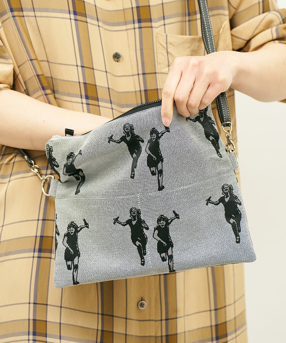 Jacquard Works とアーティスト・高橋信雅氏の「クラシック・シリーズ」とのコラボレーションで生まれたフリップバッグです。「大人の滑稽」がコンセプトのお茶目でクールなイラストを、ジャカード織の生地で細部までこだわって表現しました。