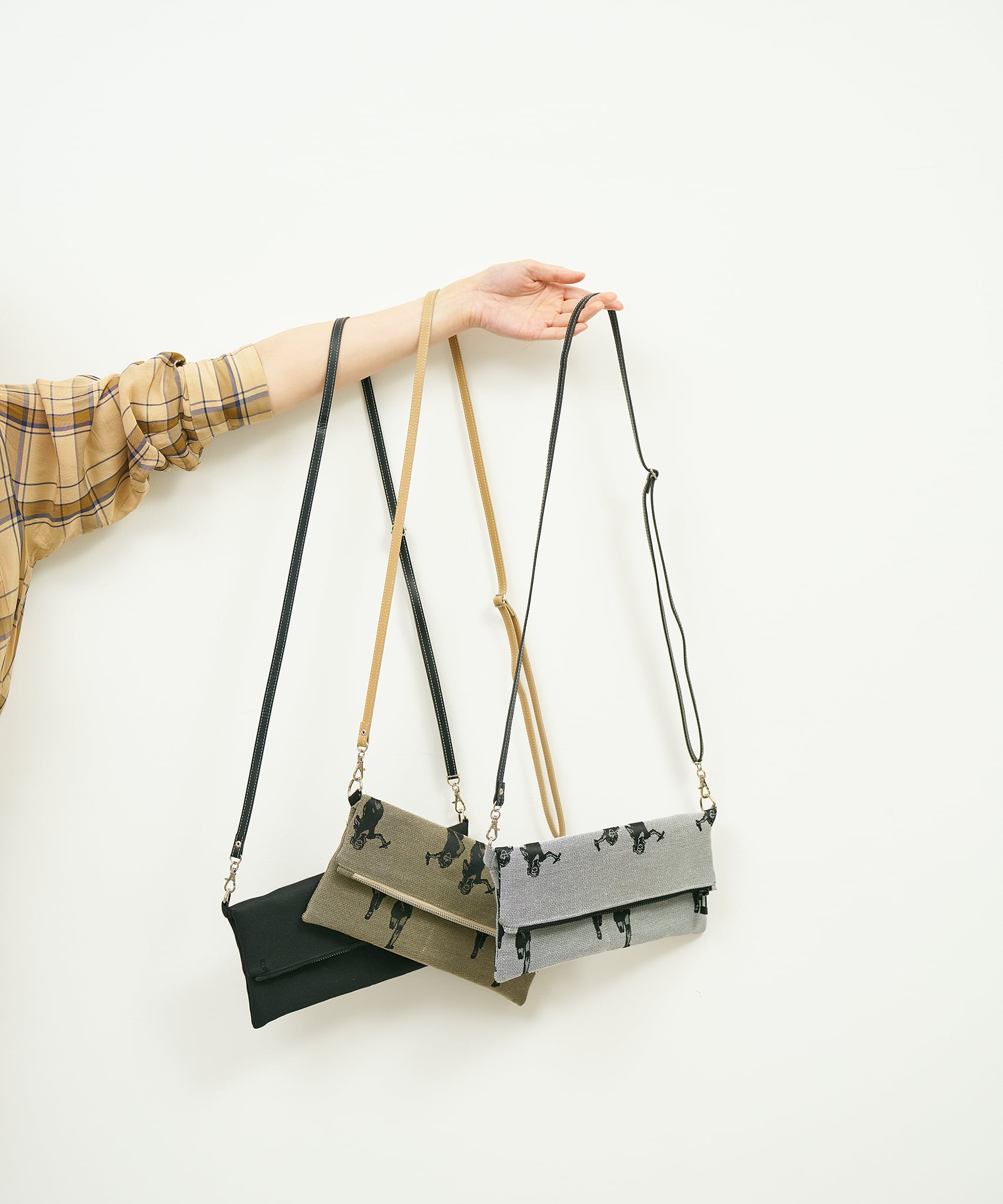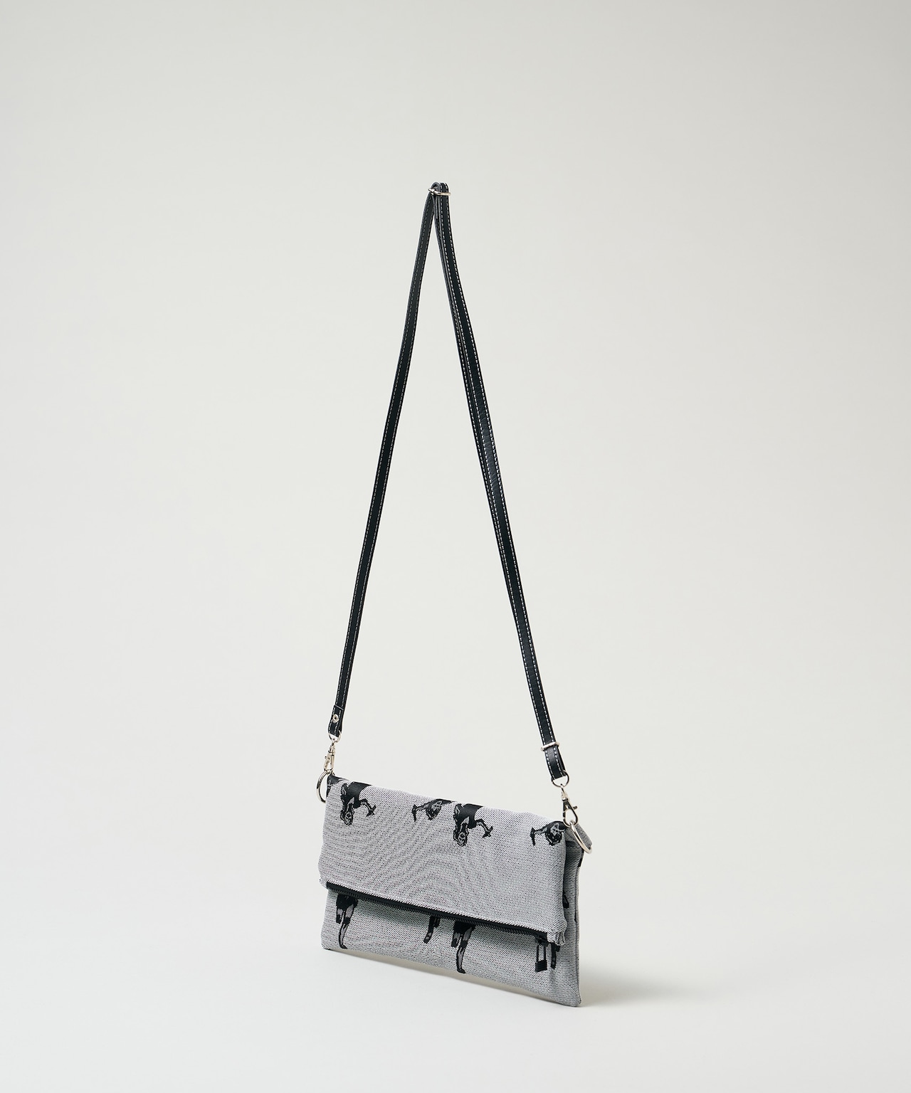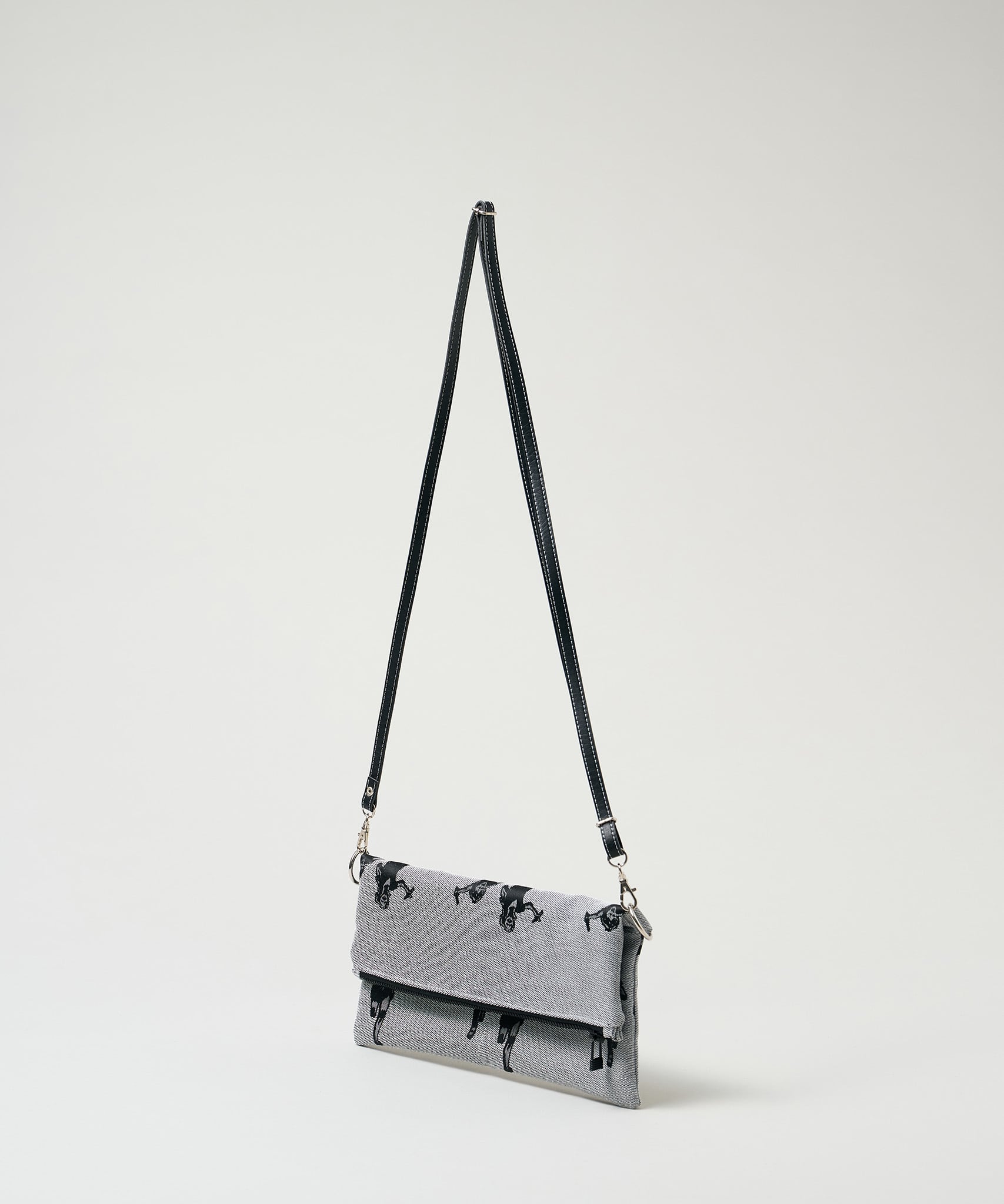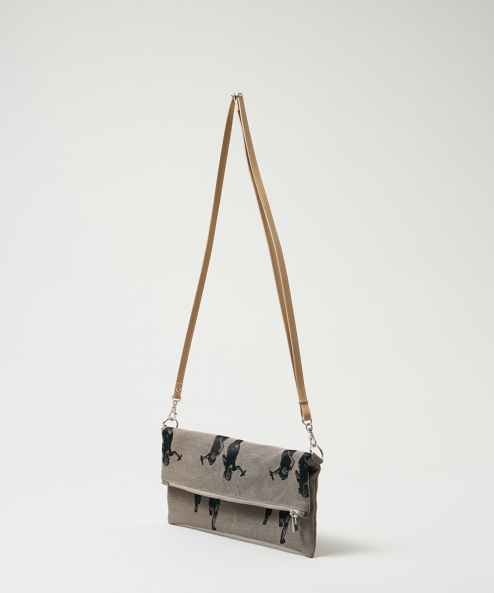 Jacquard Works とアーティスト・高橋信雅氏の「クラシック・シリーズ」とのコラボレーションで生まれたフリップバッグです。「大人の滑稽」がコンセプトのお茶目でクールなイラストを、ジャカード織の生地で細部までこだわって表現しました。