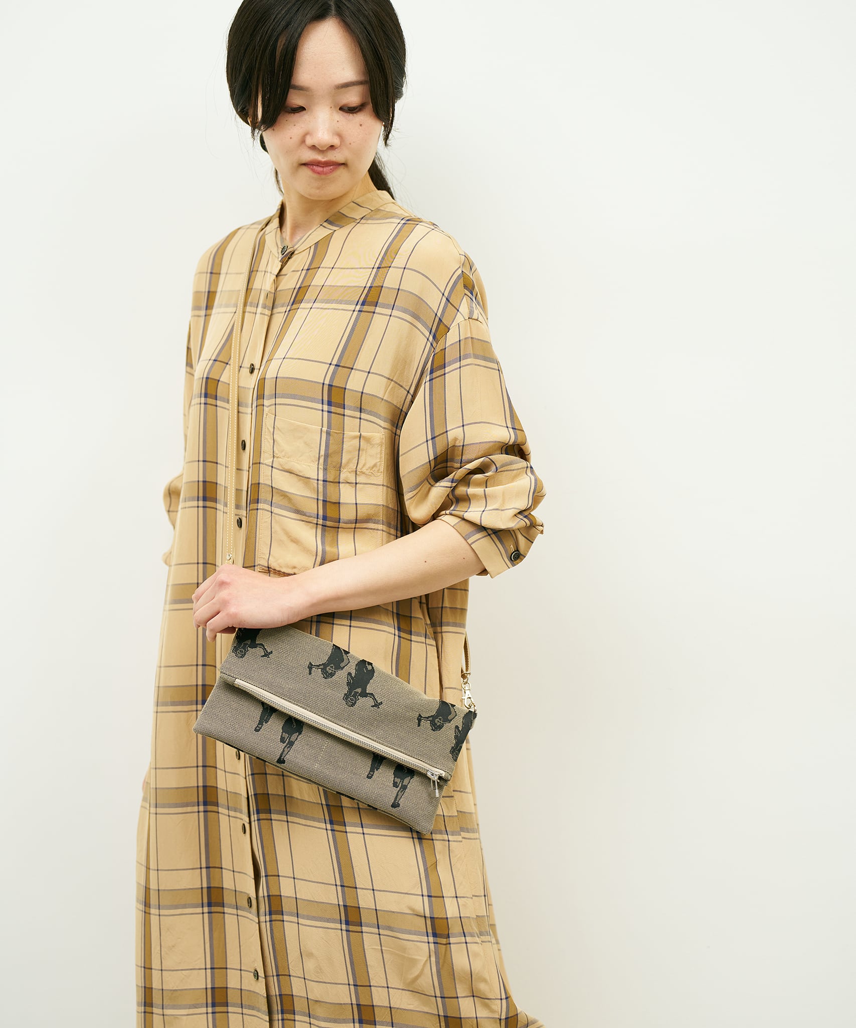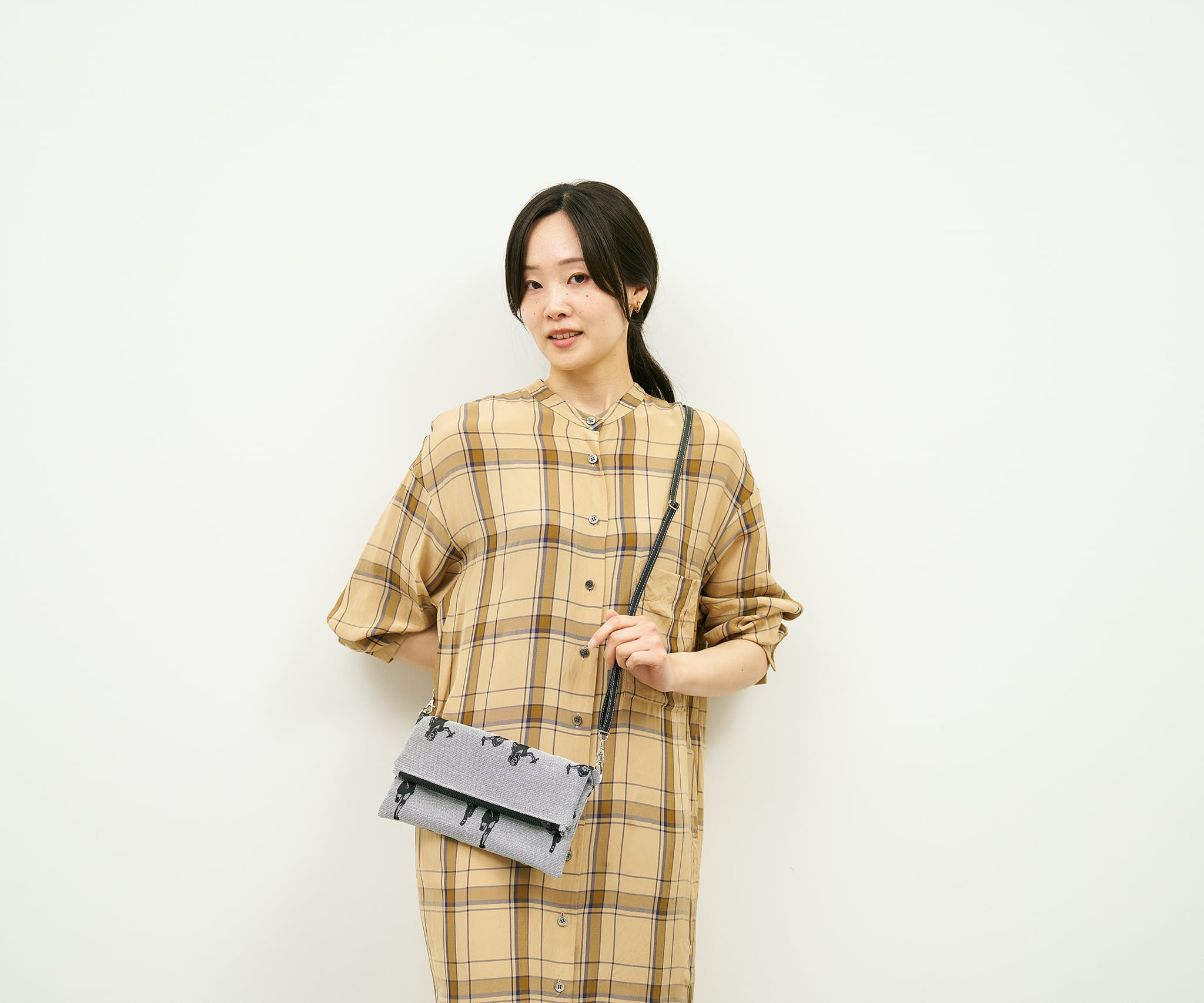 バッグ内側の千鳥格子も、Jacquard Worksオリジナルのジャカード織生地です。落ち着いたトーンでフォーマル/カジュアルどちらでも合わせて頂くことが可能。ユニセックスにお使い頂けます。